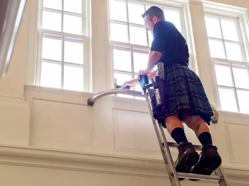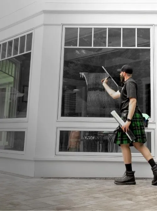 One of our kilted cleaning experts thoroughly inspects your windows and notes any damage, leaks, broken glass, or other problems.2We clean your windows using non-abrasive materials, including mops, scrubs, and squeegees, for a streak-free shine.3We detail clean the window sill, corners, and edges.4We thoroughly clean-up, so we leave your home even better than we found it.