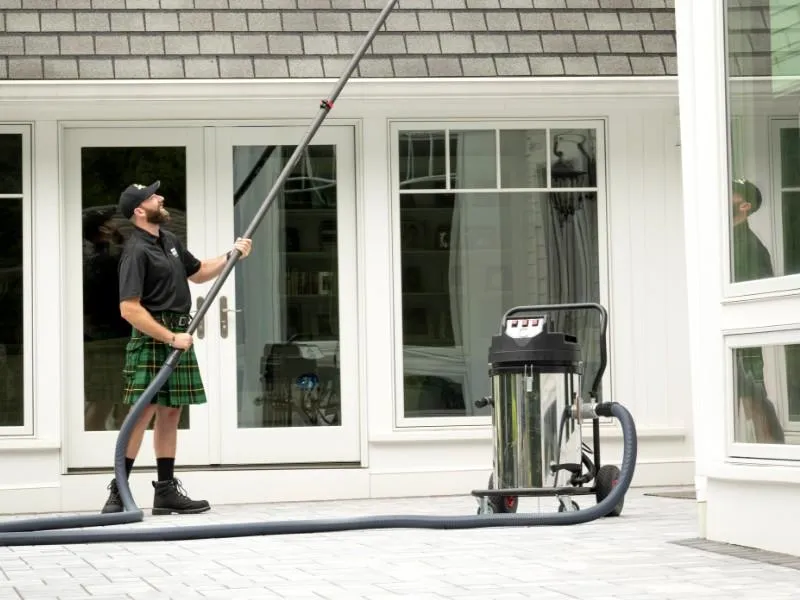 One of our kilted technicians walks the exterior of your home to evaluate soil levels and access points.2Gutters and down spouts are cleaned section by section, using manual techniques and powerful gutter cleaning vacuums.3High-definition mounted gutter cameras look at every angle and section to make sure your gutters are completely clean.4We complete a final walk-through to assess satisfaction and the debris is hauled off, not left on your property.